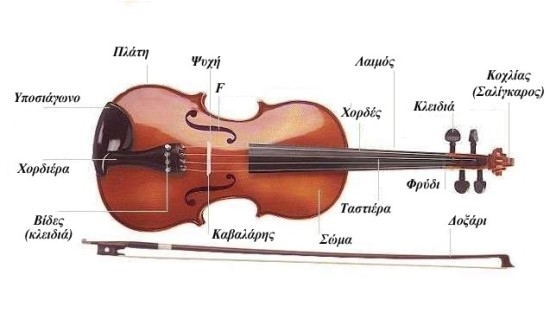 Το βιολί απαρτίζεται από τα παρακάτω μέρη:
