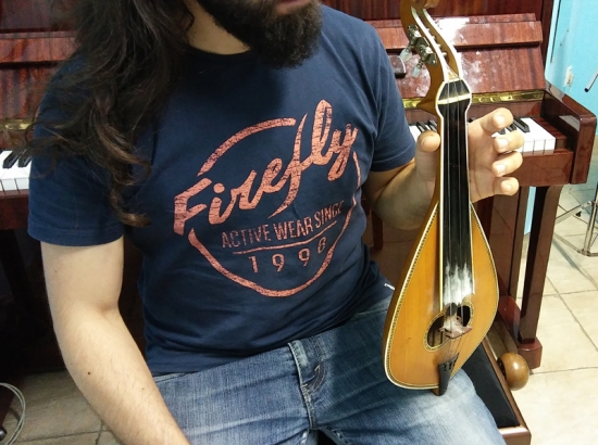 Τοποθετούμε τη λύρα μας με τη μύτη ή με το "μάγουλο" της λύρας πάνω στον αριστερό μηρό μας (βλ. φωτο παραπάνω). Το αριστερό χέρι που κρατάει τη λύρα χρησιμοποιεί τον αντίχειρα για να αγκαλιάσει το λαιμό και το μαλακό μέρος της παλάμης από την άλλη μεριά του λαιμού. Το κεντρικό κομμάτι της παλάμης δε θα πρέπει να ακουμπάει γιατί θα περιορίζει την κινητικότητα των δακτύλων αργότερα.