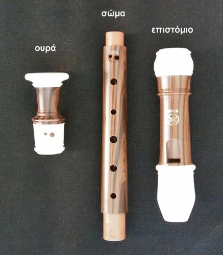 Η φλογέρα που έχετε μπορεί να είναι μονοκόμματη ή μπορεί να αποτελείται από 3 μέρη (επιστόμιο, σώμα και ουρά). Αν είναι σε 3 μέρη θα πρέπει κατ’ αρχάς να ενώσετε τα 3 κομμάτια μεταξύ τους και να ευθυγραμμίσετε τη τρύπα του επιστομίου με τις τρύπες του κυρίως σώματος. Οι τρύπες τις ουράς πρέπει να έχουν μία ελαφριά κλίση προς τα δεξιά (βλ. φωτο).
